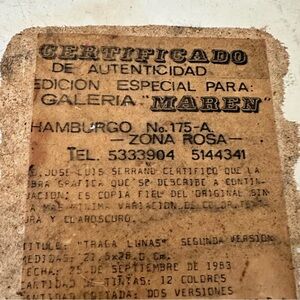 Mixed media painting by artist Jose Luis Serrano, circa. 1983. Leather and acrylic on panel. Certificate of Authenticity on the back Signed and dated. Number 44 out of 100.