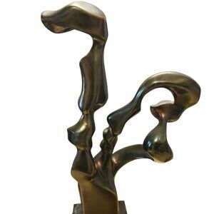This abstract sculpture showcases creativity and adds sophistication to any setting. Its unique design is mounted on a marble type base.