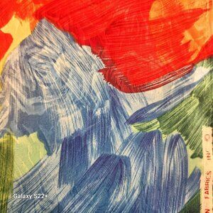 This fabric features a vibrant abstract brushstroke design in bold colors, ideal for crafting, upholstery, or apparel projects. Durable and eye-catching.