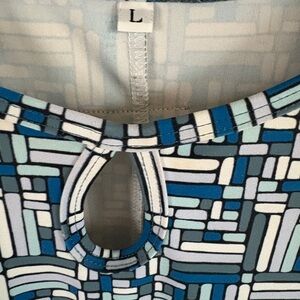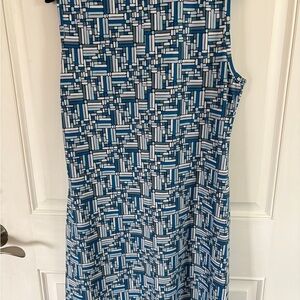 Step out in style with this abstract patterned blue dress. Its sleeveless design and modern look make it perfect for any occasion.