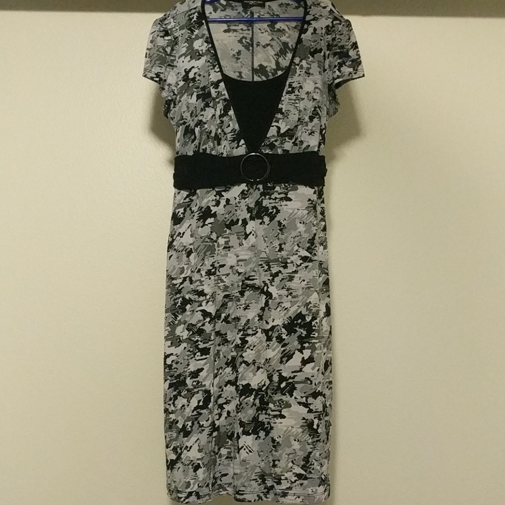 Lightweight dress. Can be used for business casual. Has a black sash that can be tied in the back.