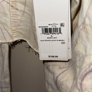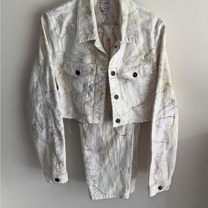 Stylish jacket with an abstract pattern. Features a mix of white, gray, and hints of yellow. Perfect for a unique look.