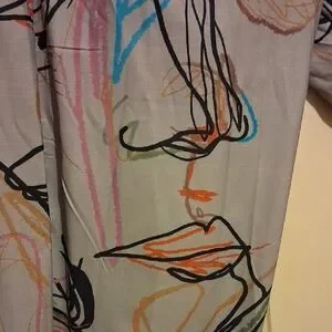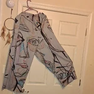 NWOT Stylish wide leg pants with an abstract design. Features a mix of colors for a unique look. Never worn.