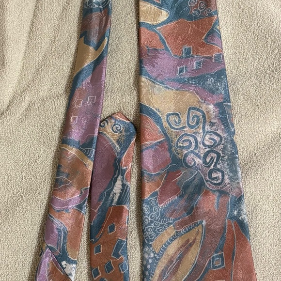 Elevate your style with this abstract patterned tie, featuring a blend of vibrant colors. Perfect for adding a unique touch to any formal outfit.
