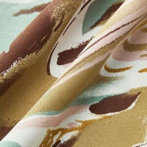 Stylish two-piece set with an abstract pattern. Features a mix of pink, brown, and cream colors. Perfect for a chic look.