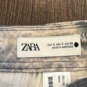Zara sheer wide-leg pants with an abstract pattern. Features a blend of gray and cream colors. Brand New w/tags