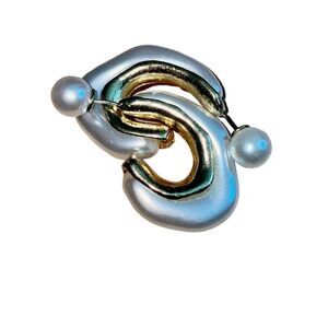 Abstract Pearl Half Moon Hoop Earrings