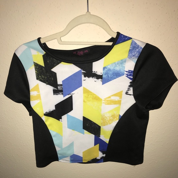 Super comfy and chic crop top in black with artsy abstract print on the front