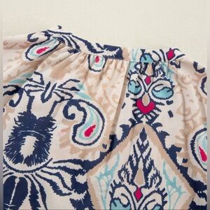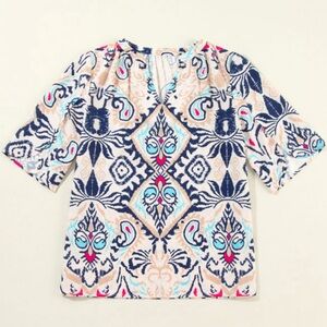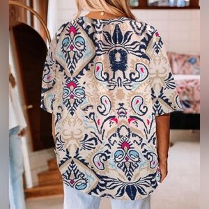 Abstract Print Notched V-Neck Half Sleeve Blouse