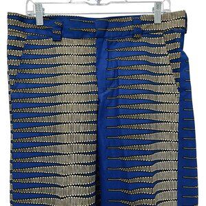 Abstract Print Pants Blue Gold Geometric Mid Rise Tapered Leg Bold Retro Mod