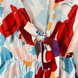 Abstract Print Plunging Neck Layered Hem Dress Size: XS