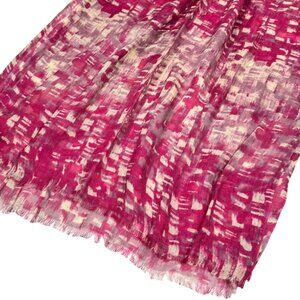 Abstract Print Scarf Pashmina Wrap Shawl Pink White Fringe Contemporary