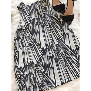 Sleeveless abstract top with a small pocket and two small silver buttons on one side. Racerback. 100% Polyester. Hand wash only. Good condition but a bit faded. Great for work.
