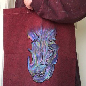 This bag is an eco-friendly tote bag that has been hand painted by me that can be used for anything! I personally use it for groceries but it can be used as a night bag or any type of tote to carry special items.