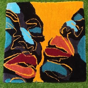 Looking for a unique statement piece? You’ve found it in this abstract hand crafted rug art. Can be displayed as wall art or center piece decor! FREE SHIPPING. FREE FRAMING upon request! This piece is calling you!