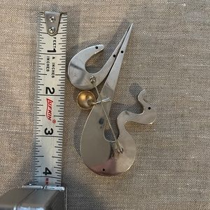 This abstract brooch is in excellent condition. If you've ever seen Holly Pan demonstrate how to wear a cardigan as a cape (as seen on the Tamryn Hall show) this brooch would be perfect. In fact, any ornate brooch would be great. The brooch weighs approximately 35 grams.