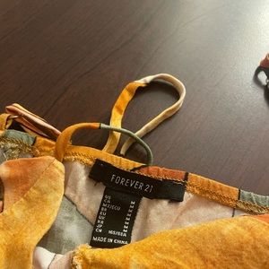 This Forever 21 slip dress is absolutely stunning and so flattering when it’s on. Unique print and earthy colors. Great condition. Slightly used. Zips on the side and straps adjust. Slit in the side.