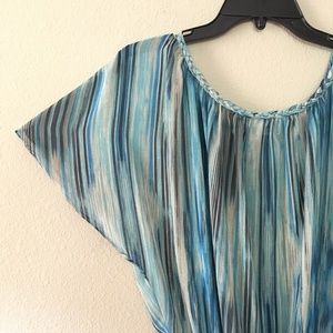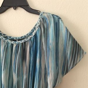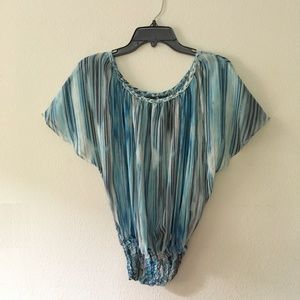 Abstract Stipe Fluffer Sleeve Sheer Top - Blue