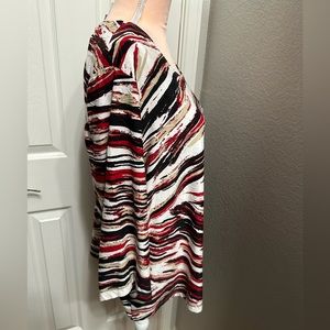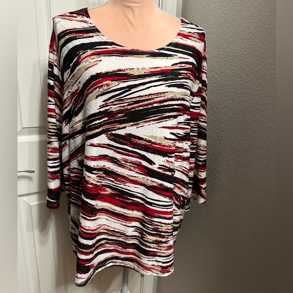 Burgundy, White, Black and Tan Abstract striped textured top. This boutique top is super flattering And perfect for fall!
