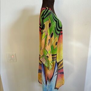 Vibrant abstract, colorful print.Once size fits all.