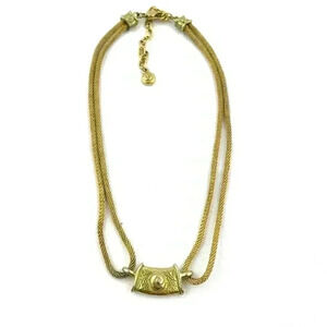 Abstract Unique Gold Tone Metal Boho Necklace Accent Design 14" Long