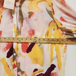 Abstract Yellow Print Womens Button-Up Blouse XXL Long Sleeve Lightweight Top