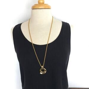Abstract circle gold tone pendant necklace, chunky chain and sturdy clasp