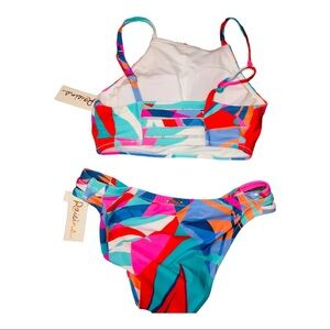 Abstract pucci geometric pink blue colorblock 2piece geometric print halter bikini set size XS new