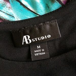 Gorgeous colors on this easy wear and care dress! Bust measures 19.5" flat and it has a total length of 36".