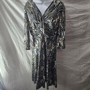 Abstract patterned 3/4 sleeve midi a line dress