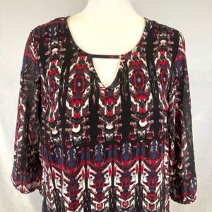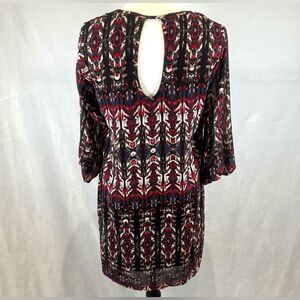 Small keyhole front and large keyhole back. Semi sheer sleeves. Lined. Euc