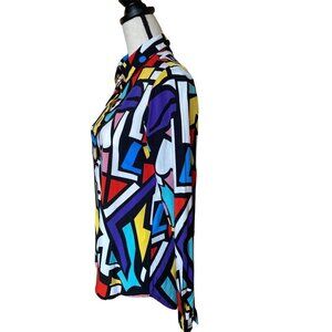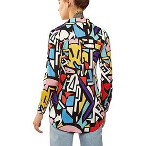 Abstract printed color block colorful oversized button up shirt women Small/Med