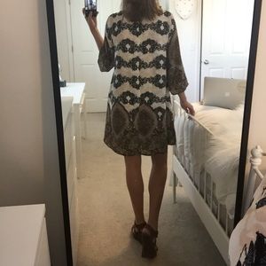 Adorable pattern, very light and super comfortable. Lightly worn. Quarter length sleeves.