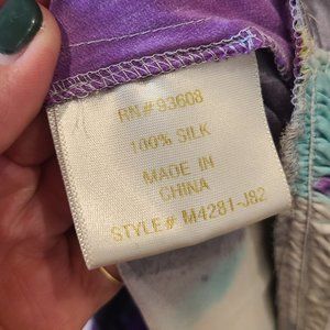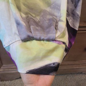 Beautiful silk short sleeve blouse by Maddy M size M women's. No rips or stains. Beautiful abstract almost like a water color painting. 100% silk. Smoke free. Pleating in front and some elastic in back.