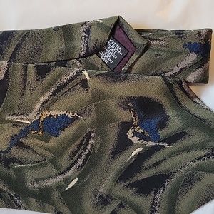 mens abstract tie set. green leafy texture, olives and grapes pattern, graffiti flower. EUC.