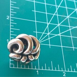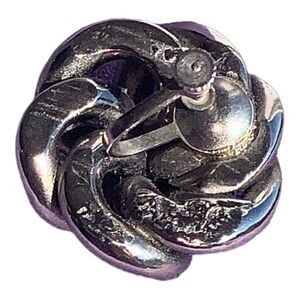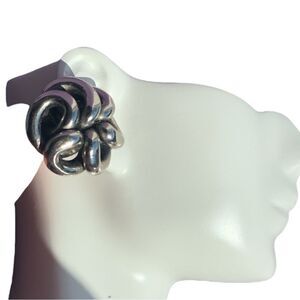 Fabulous shiny gracefully twisted tubes of silver shaped into abstract flowers. Mid century design, possibly signed , screw back. Stunning elegance snd shine approximately 1” round , magnificent. Please see all photos for full description