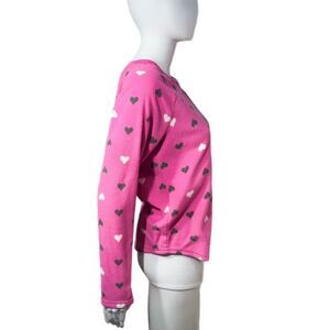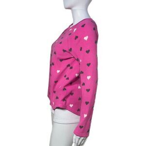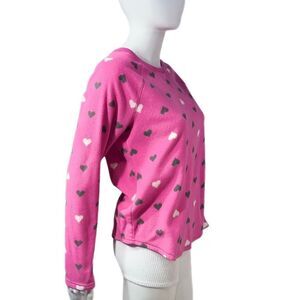 Get ready for a cozy night in, made from ultra-soft microfleece, this top will hug you in all the right places for a comfortable and relaxed fit. Bright fusia color, while the abstract heart print in grey and white adds a touch of fun.