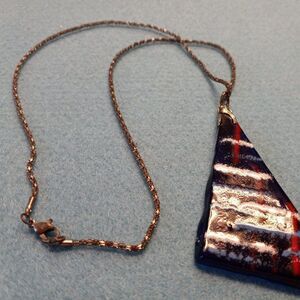 Abstract Red, White and Blue Glass Pendant & Silver Metal chain