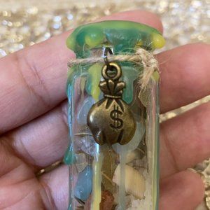Abundance Money 💰 Crystal Bottle Spell Cloves: for abundance Bay Leaves: Money wishes coming true Almonds: Prosperity Green Aventurine: Sea Salt: Protection.