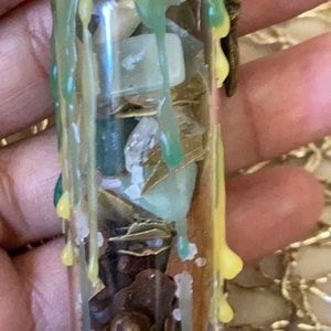 cork with wax-sealed, black salt, dried flowers and herbs containing properties aligned with energies for intention manifestation. natural elements. *This fabric is placed under the moon and stars to be blessed and charged with cosmic energy. instructions who activated included. It is a exclusive design!