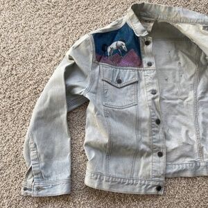 Aca Joe Stone Wash Jean Jacket Size Large - Hand Painted Horses Made In Japan