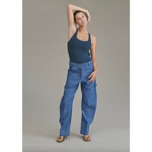 The Horizon bodysuit features a sophisticated deep teal color with a comfortable ribbed texture. This versatile piece is perfect for layering or wearing on its own.
