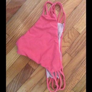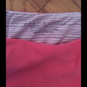 This beautiful papaya Acacia Swimwear bikini bottom is perfect to match with many types of bikini tops because it is two-toned! Coral on the outside and a grey and white thin striped material on the inside. They've also never been worn! Color is called Ginger