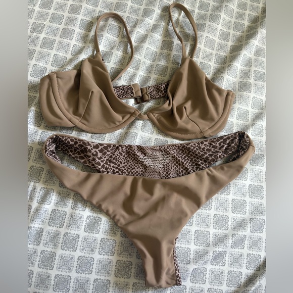 Stylish Acacia bikini set with a brown animal print. Perfect for beach days.