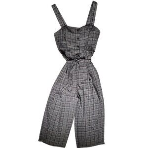 Academia Checkered Sleeveless FrontButton Up Jumpsuit Gray Culotte Fit Women’s S