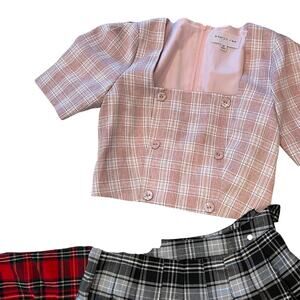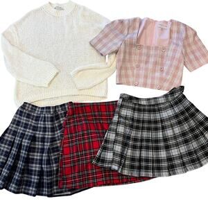 Academia Style Bundle Plaid Pleated Mini Skirts and Tops size XS