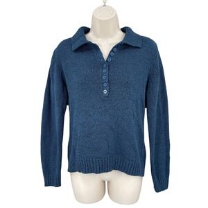 Academia Sweater Women Preppy Collared Henley Retro Y2K Knit Ribbed Blue Size S