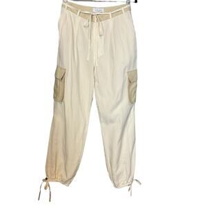 L'Academie White Cargo Pant White Khaki MEDIUM Jogger Linen Revolve Blokette Baggy Designer $228 NEW