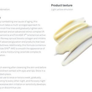 Instead of simply combatting one cause of aging, this breakthrough serum takes a multi-pronged approach to dramatically diminish fine lines and gradually tighten skin. Edelweiss stem extract and an advanced retinol complex lift and firm, while carnosine and FolinAGE X® (a botanical active derived from the Norway spruce) boosts collagen and inhibits the production of advanced glycation end products that lead to wrinkles and dullness. Additionally, this formula contains a "Botox like" peptide SYN®-AKE to smooth the appearance of expression lines and a moisturizing ceramide complex to prevent any irritation.