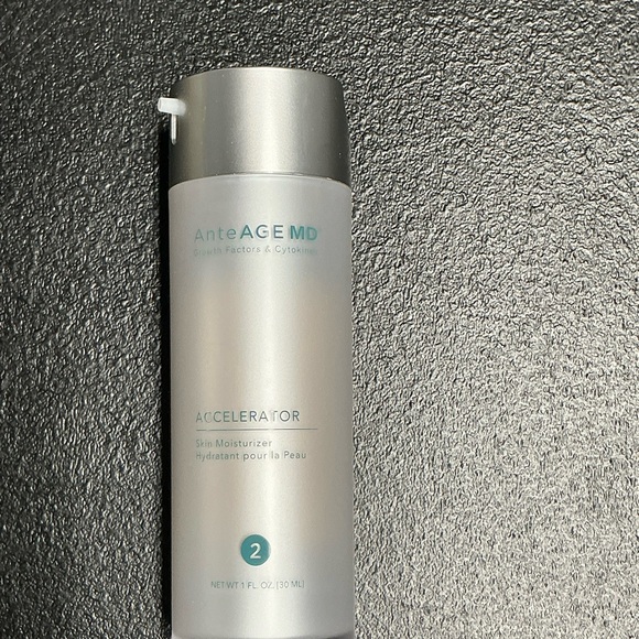The AnteAGE Accelerator is a performance driven treatment rich in powerful moisturizers and revitalizing actives. Stem Cytokines™, vitamins, and targeted antioxidants work to deeply hydrate and nourish the skin, while two research-backed molecules (a defensin peptide and retinoid-like compound) enhance the pro-healing, regenerative and anti-inflammatory potential of the AnteAGE system.